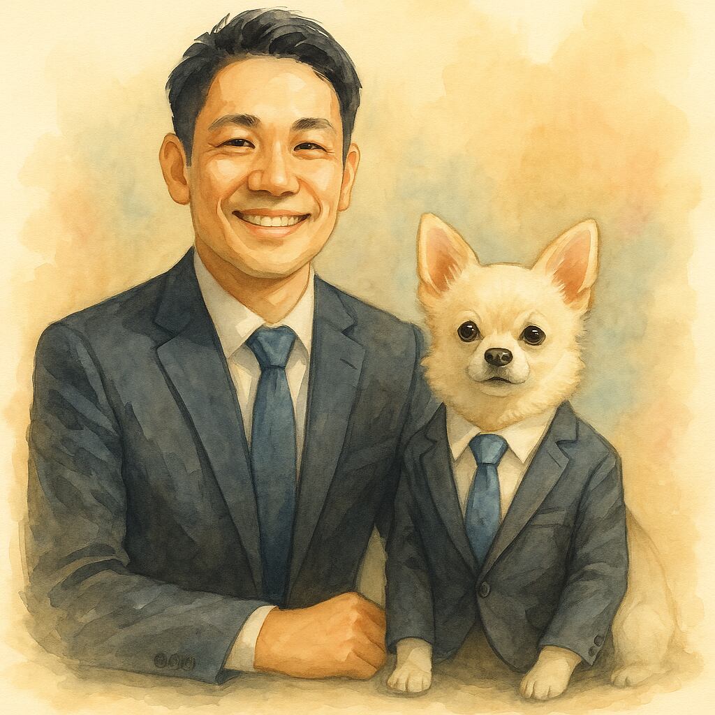 スーツを着たペットとあなた自身を並べた、